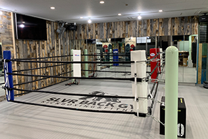 シルバーバックジムでは練習設備が充実! リング、常設サンドバック4本、ウェイト設備をはじめ、男女別更衣室、シャワー、トイレ、鏡、ドライ ヤーを完備しております。