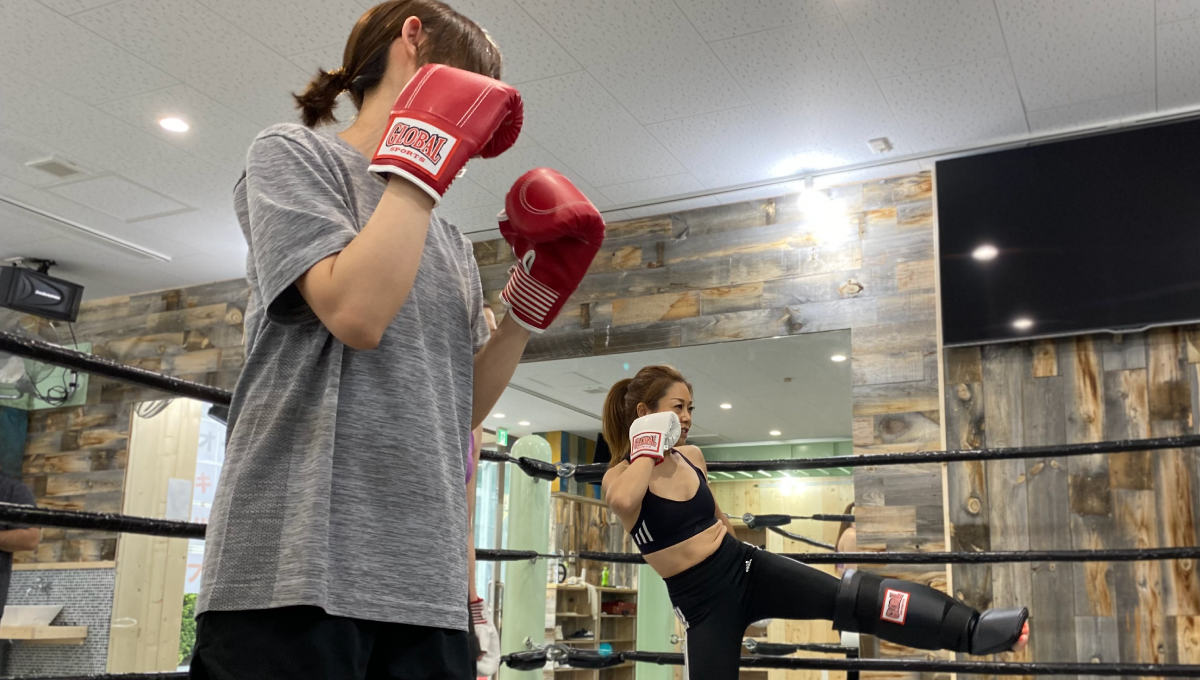 1階フロアには取り外しができる可動式のリングを完備し、本格的なキックボクシングを体験できます。